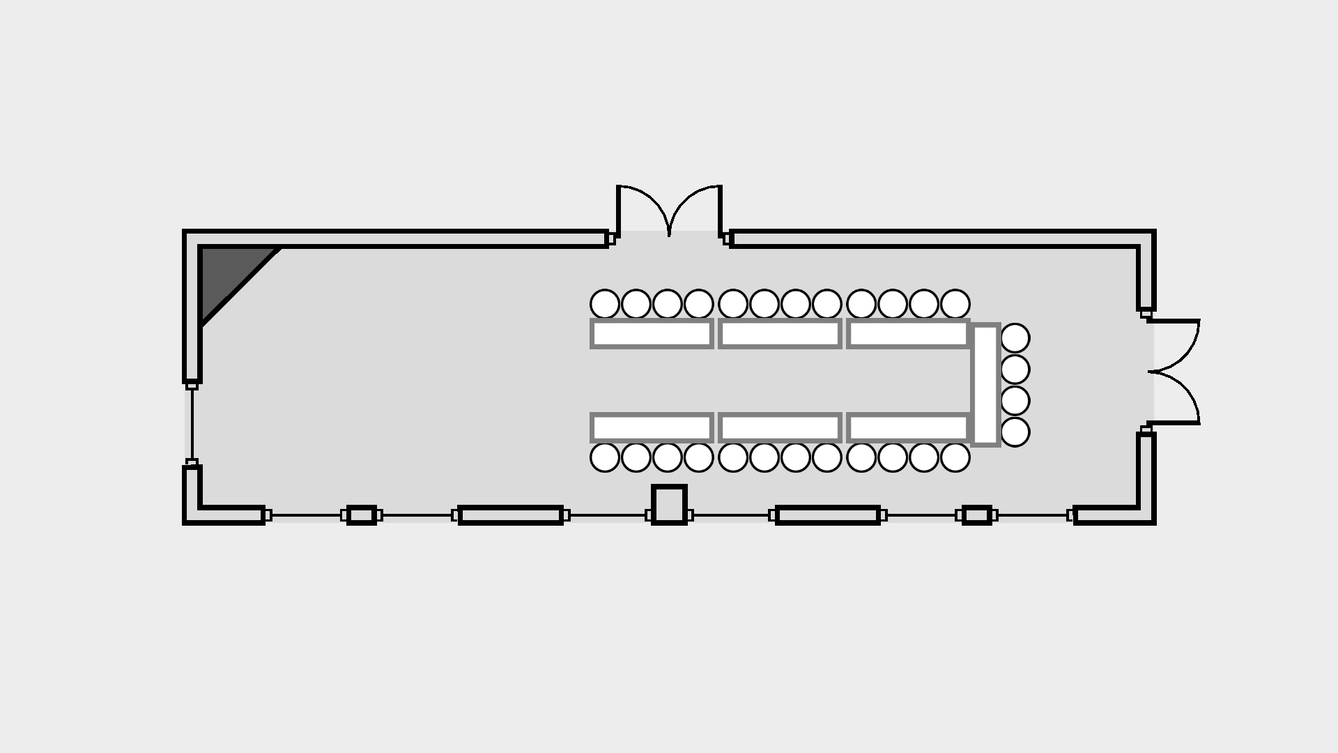 High ceilings, architectural detail, and a private entrance give the Ballroom a sense of arrival. Whether hosting keynote sessions or evening galas, this space carries presence without overpowering the moment. Flexible layouts allow the room to adapt to the energy you bring.